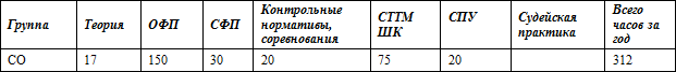 * часы в таблице указаны с учётом совмещения работы над школой базовых движений, специальной физической подготовки, совершенствованием технико-тактического мастерства и специальных подготовительных упражнений.