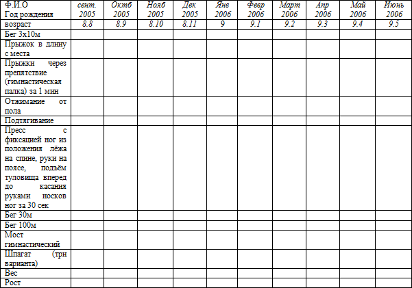 Таблица № 6 Таблица развития физических качеств на основе ежемесячного мониторинга