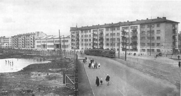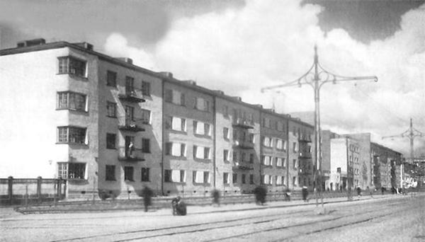 Кондратьевский жилмассив построен в 1929–1931 годах по проекту хорошо знакомых нам архитекторов Г.А. Симонова и Т.Д. Каценеленбоген в соавторстве с И.Г. Капцюгом и Л.М. Тверским.