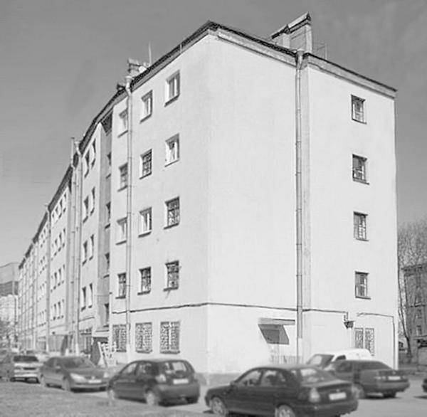 Рядом располагалось еще несколько интересных конструктивистских домов — так называемые «тахитектоны», разработанные инженером И.В. Рянгиным. Тахитектон означает в переводе с греческого «шагающий строитель». Новая техника строительства позволяла создать здание за 40 дней внутри скользящей опалубки.
