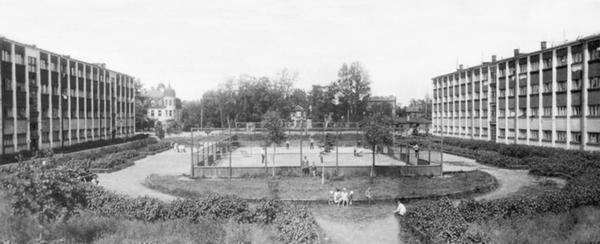 Здания жилмассива (в 1930-е гг. его называли жилконцентром) четырех— и пятиэтажные, украшены балконами и лоджиями. Причем некоторые рассчитаны сразу на две квартиры и не разделены перегородками, так что из квартиры в квартиру легко было ходить в гости или устраивать совместные посиделки теплыми летними вечерами.
