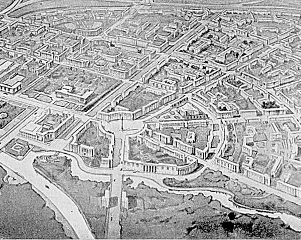 Иногда архитекторам-конструктивистам приходилось вписывать свои дома в классическую застройку центра города. Дело это было нелегкое, требовавшее большого такта и изобретательности.