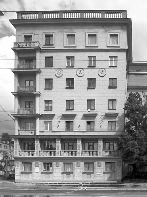 Так называемый «Дом специалистов» построила в 1934–1937 годах уже хорошо знакомая нам команда архитекторов: Г.А. Симонов, Т.Д. Каценеленбоген и Б.Р. Рубаненко. Он предназначался для ученых, организаторов производства и специалистов предприятий и организаций Выборгской стороны.