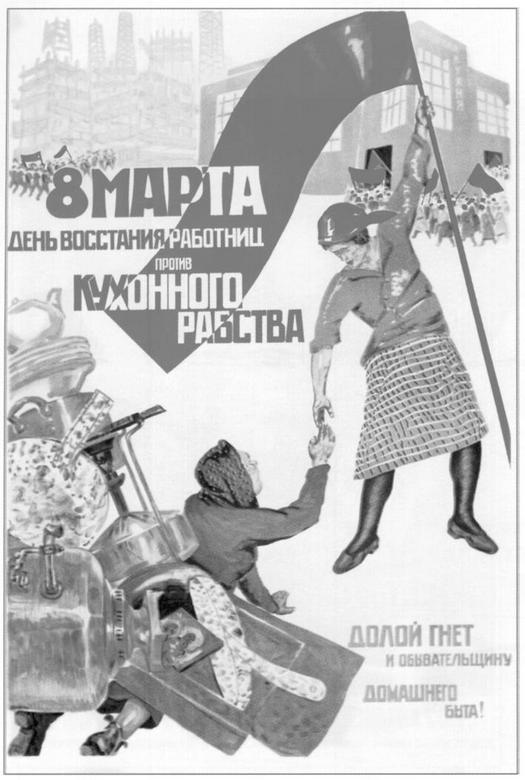 Молодая Советская республика не могла себе позволить обойтись без женского труда (как, впрочем, ни одно государство в мире во все века его существования). Но зато она могла облегчить домашний труд. Появлялись новые заводские столовые, столовые при домах-коммунах и домах специалистов. Появилось, наконец, новое, невиданное предприятие — фабрики-кухни, задачей которых было поставлять горячие обеды большими партиями (от 10 до 30 тысяч обедов в день). При фабрике-кухне могла быть организована столовая, но часто, благодаря экспедиции термосов, готовая горячая пища доставлялась непосредственно на предприятия.