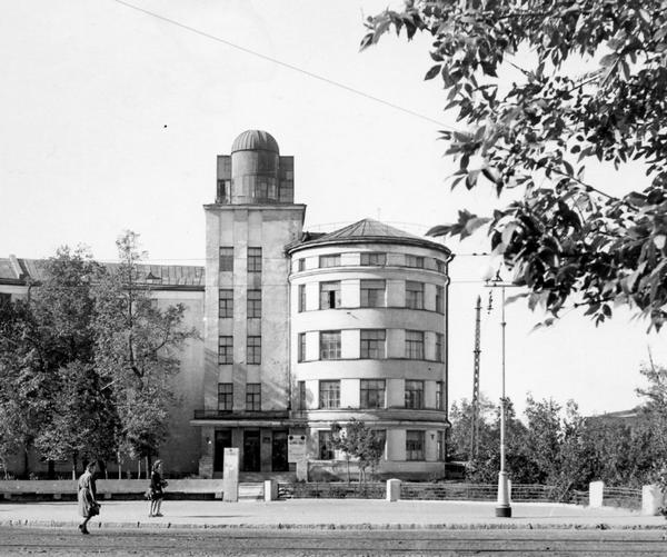 Построена в 1929–1930 годах по проекту автора «жилконцерна завода „Электросила“» Г.А. Симонова и располагалась на углу Свеаборгской улицы и Георгиевской улицы (переименована в 1940 г. в ул. Решетникова).