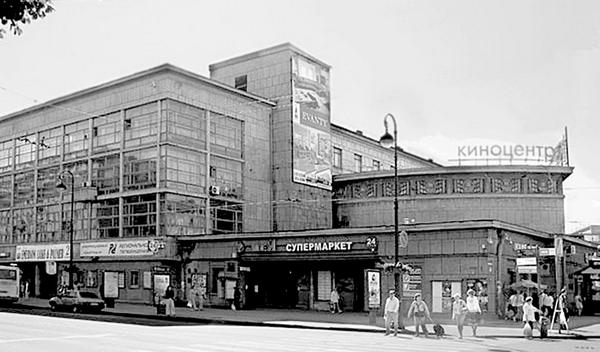 Главный фасад монументального здания кинотеатра акцентирован многоколонным портиком и гигантским витражом в виде стилизованного киноэкрана. Скульптурные панно, расположенные по сторонам витража, воспроизводили кадры из советских кинофильмов.