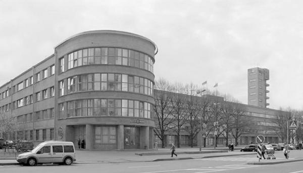 На здание не жалели средств и материалов. Его монолитный железобетонный каркас позволил архитекторам создать полноценные ленточные окна длиной 120 м. Главное украшение здания — 50-метровая прямоугольная башня с угловыми балконами, увенчанная горельефом с серпом и молотом.
