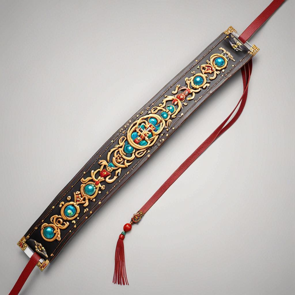 И в самом деле, один кончик пояса бежевый, а другой такой же, как и остальной артефакт, тёмно-коричневый, кожаный.