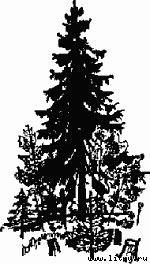 Он взял топор и постучал обухом по стволу ближайшей ели. Великолепное дерево точно застонало, а с мохнатых зеленых ветвей покатились комья пушистого снега. Где-то в вершине мелькнула белка, с любопытством глядевшая на необыкновенных гостей; а громкое эхо прокатилось по