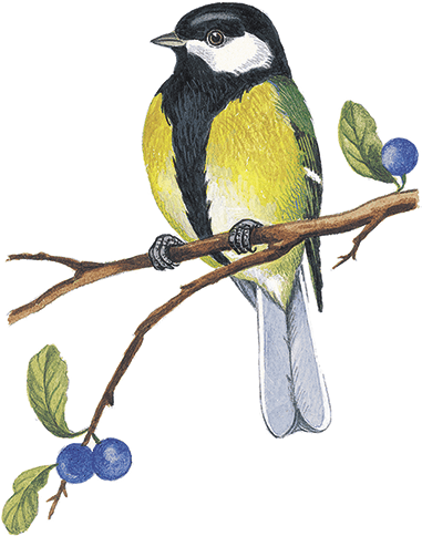 В саду с ветки на ветку перелетает небольшая шустрая птичка, ростом поменьше воробья. Спинка у неё серая, грудка жёлтая, на головке чёрная бархатная шапочка. Это птица-синица. В сад она за добычей прилетела: за жучками и за гусеницами.