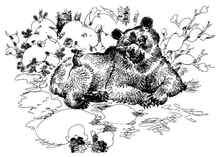 Медведь в ответ ни гугу: не шелохнётся, не ворохнётся. Знай посапывает.