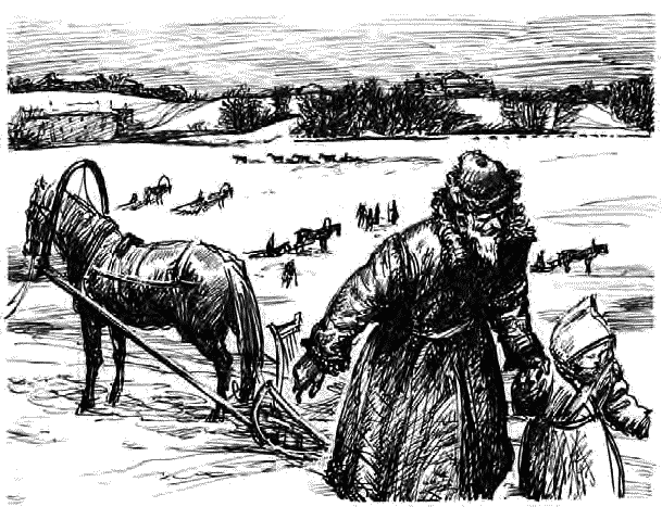 Зимой, ране-хонько, близ жи-ла,Лиса у проруби пила в большо-ой мороз…Слушает Горкин, и Андрейка, и даже будто Кривая слушает, распустила губы. Антипушка засупонивает, подняв ногу, и подбадривает меня: «А ну, ну!» Скорей бы ехать, а он все-то копается, мажет Кривой копытца. Не на парад нам, чего тут копытца мазать! Нельзя не мазать: копытца старые, а дорога теперь какая, во-лглая… – надо беречь старуху. И правда, снег начинает маслиться, вот-вот потекут сосульки: пока пристыли, крепко висят с сараев, а дымок вон понизу стелется – ростепели начнутся. Видно, конец зиме: галочьи «свадьбы» кружат, воздух затяжелел, стал гуще, будто и он замаслился, – попахивает двором, сенцом, еловыми досками-штабелями, и петуху уж в голову ударяет, – «гребешок-то какой махровый… к весне дело!».