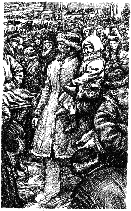 На Конной – ей и конца не видно, – где обычно торгуют лошадьми цыганы и гоняют их на проглядку для покупателей, показывая товар лицом, стоном стоит в морозе гомон. Нынче здесь вся Москва. Снегу не видно – завалено народом, черным-черно. На высоких шестах висят на мочалках поросята, пучки рябчиков, пупырчатые гуси, куры, чернокрылые глухари. С нами Антон Кудрявый, в оранжевом вонючем полушубке, взял его Горкин на подмогу. Куда тут с санками, самих бы не задавили только, – чистое светопреставление. Антон несет меня на руках, как на Постном рынке. Саночки с бахромой пришлось оставить у знакомого лавочника. Там и наши большие сани с Антипушкой, для провизии, – целый рынок закупим нынче. Мороз взялся такой – только поплясывай. И все довольны, веселые, для Рождества стараются, поглатывают-жгутся горячий сбитень. Только и слышишь – перекликаются: