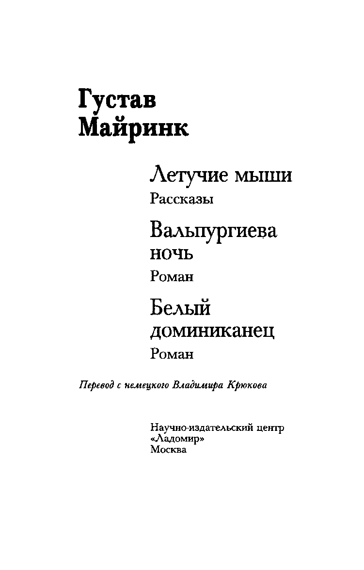 Издательство «Ладомир» представляет собрание избранных произведений австрийского писателя Густава Майринка (1868 — 1932).