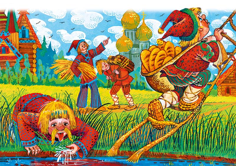 делать, надо задавать другую задачу. Царь велел сказать дурню: «Ну, коли ты такой хитрый, так покажи своё удальство: съешь со своими товарищами за один раз двенадцать быков жареных да двенадцать кулей печёного хлеба». Первый товарищ услыхал и объявил про то дурню. Дурень испугался и говорит: «Да я и одного хлеба за один раз не съем!» – «Не бойся, – отвечает Объедало, – мне ещё мало будет!» Пришёл слуга, явил царский указ. «Хорошо, – сказал дурень, – давайте, будем есть». Принесли двенадцать быков жареных да двенадцать кулей хлеба печёного; Объедало один всё поел. «Эх, – говорит, – мало! Ещё б хоть немножко дали…» Царь велел сказать дурню, чтобы выпито было сорок бочек вина, каждая бочка в сорок вёдер. Пер-вый товарищ дурня подслушал те царские речи и передал ему по-прежнему; тот испугался: «Да я и одного ведра не в силах за раз выпить». – «Не бойся, – говорит Опивало, – я один за всех выпью; ещё мало будет!» Налили вином сорок бочек; Опивало пришёл и без роздыху выпил все до одной; выпил и говорит: «Эх, маловато! Ещё б выпить».После того царь приказал дурню к венцу готовиться, идти в баню да вымыться; а баня-то была чугунная, и ту велел натопить жарко-жарко, чтоб дурень в ней в одну минуту задохся. Вот раскалили баню докрасна; пошёл дурень мыться, а за ним следом идёт мужик с соломою: подостлать-де надо. Заперли их обоих в бане; мужик разбросал солому – и сделалось так холодно, что едва дурень вымылся, как в чугунах вода стала мёрзнуть; залез он на печку и там всю ночь пролежал. Утром отворили баню, а дурень жив и здоров, на печи лежит да песни поёт. Доложили царю; тот опечалился, не знает, как бы отвязаться от дурня; думал-думал и приказал ему, чтобы целый полк войска поставил, а у самого на уме: «Откуда простому мужику войско достать? Уж этого он не сделает!»