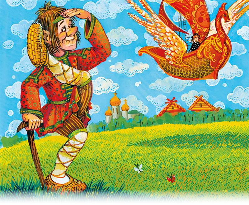 Летели-летели, глядь – несёт человек за спиною полон мех хлеба. «Здоров, дядьку! Куда идёшь?» – «Иду, – говорит, – добывать хлеба на обед». – «Да у тебя и так полон мешок за спиною». – «Что тут! Для меня этого хлеба и на один раз укусить нечего». –