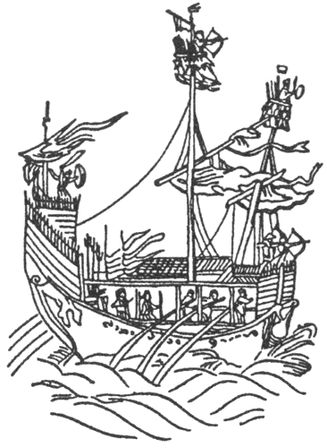 После соответствующего указа в апреле 1405 года началась подготовка к экспедициям: формирование флота, комплектование команд и т.д. Суда «посольского типа» создавались во множестве заранее, еще с 1403 года. Но сооружались и новые — на Лунцзянской верфи под Нанкином. Китайское кораблестроение достигло тогда достаточно высокого уровня. Еще в XII–XIII веках здесь умели строить большие трехмачтовые суда с многопалубной кормой, водонепроницаемыми внутренними переборками и с пропитанным особой предохранительной смазкой корпусом. А еще — широкие грузовые корабли с мелкой осадкой, малые джонки, суда самых различных типов и назначения. Они ходили под парусами, а при безветрии — на веслах. Ориентировались при помощи лоций и «югоуказующей иглы» — компаса, ночью — по звездам. Учитывалось и направление муссонов.