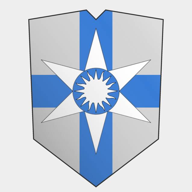 Символом в Сампии уже была не восьмиконечная звезда, а шестиконечная, центр и сама звезда символизировала самого Рабела, а его концы шесть остальных разрешенных мелких божеств. Щиты с этим символом гордо носила так называемая «Армия Света».