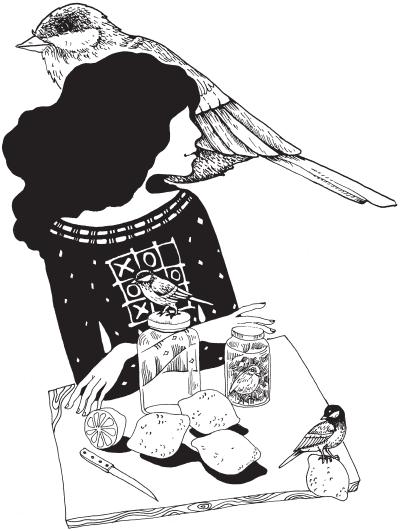 Потому что я твёрдо помнила, какой бывает настоящая любовь. Она случилась у меня в двадцать два, солнечная, огненная летом и ледяная зимой, с лимонами и синичками осенью. Была осень, когда я любила, и однажды вернулась домой, а у мамы очередная затея: провернуть через мясорубку три кило лимонов, грецких орехов и залить это всё мёдом. И я прихожу и вижу гору солнечных лимонов на столе и желтую грудку синицы за окном. С тех пор это про любовь. А весны у нас уже не случилось, поэтому я ничего не знала о любви весной, только о горе.