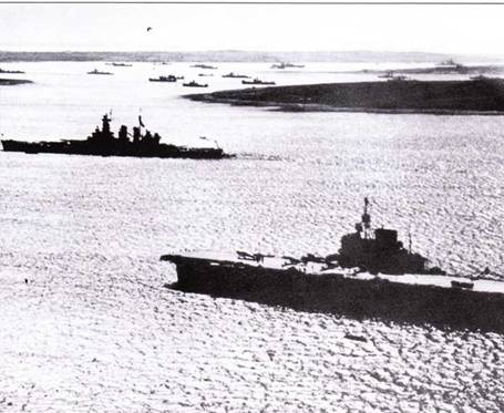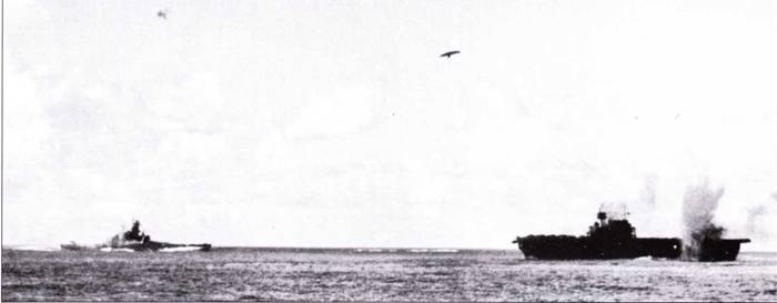 главного калибра. В октябре 1935 г. представители США приступили к переговорам с представителями Великобритании в отношении ограничений Вашингтонского договора в свете проявленного японской военщиной коварства. Стороны пришли к согласованному мнению I апреля 1937 г… после чего разрешенный главный калибр линкоров автоматически возросло 16 дюймов.В Атлантике наряду с другими новейшими американскими кораблями действовала «Северная Каролина». На заднем плане — авианосец «Хорнет», январь 1942 г. «Хорнет» ушел из Атлантики на Тихий океан раньше «Северной Каролины». Линкор и авианосец вновь встретились при Гуадалканале в сентябре 1942 г., когда «Северная Каролина» вошла в состав боевого охранения «Хорнета».