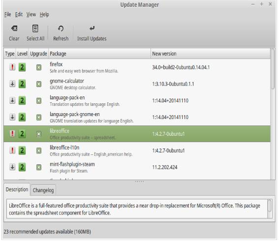 Linux Mint содержит инструмент под названием «Менеджер обновлений». Это приложение