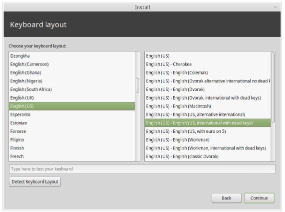 Выберите раскладку клавиатуры. Если вы не уверены, какая именно раскладка соответствует