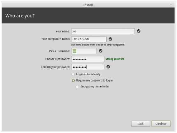 Введите своё имя, имя пользователя и пароль. Каждый раз, когда будете использовать Linux