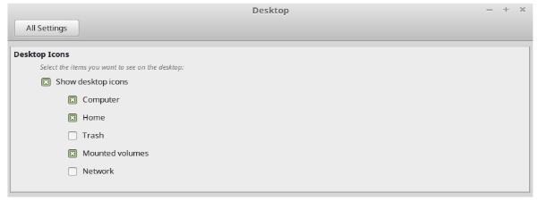 "Рабочий стол" имеет меню, позволяющее быстро настроить опции рабочего стола Cinnamon,