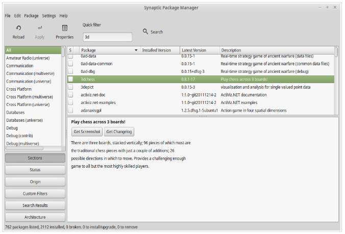 Кнопка "Менеджер пакетов" запускает программу под названием "Synaptic". Её целью
