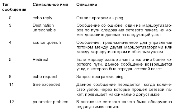 Таблица 29.3. Часто встречающиеся типы ICMP-сообщенийСообщения