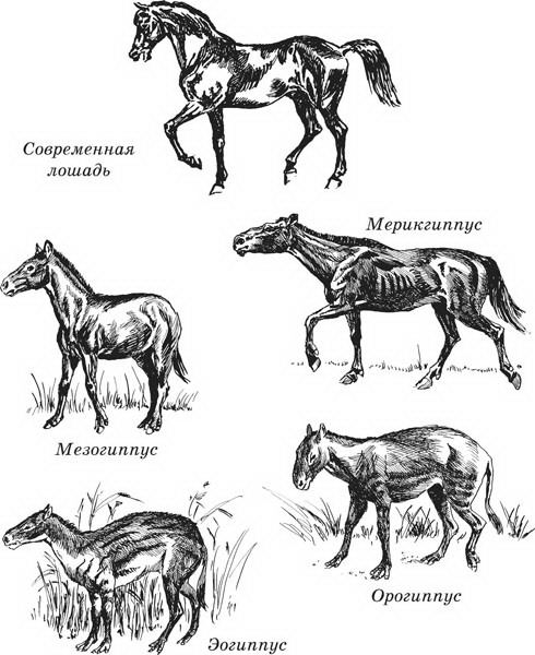 Если бы вы прогуливались по широколиственным лесам Северной Америки 60 миллионов лет назад, то непременно встретили бы маленького волосатого животного, очертаниями тела и размером напоминающего молодого вепря. Только у него не было клыков, а зубы были мелкими с низкими коронками, приспособленными для поедания сочной растительности. На передних ногах у этого странного существа было по четыре пальца, а на задних по три; строение лап напоминало собачьи. Черные полоски или пятна на рыжей шерсти помогали ему маскироваться в тени деревьев, чтобы избежать смертельной встречи с хищниками. И вряд ли кто поверил бы тогда, что эта невзрачная лесная зверушка станет праотцом стройных английских скакунов, изящных арабов и могучих першеронов!