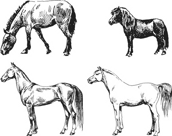 Именно в это время отделяются непосредственные предки лошади Пржевальского и тарпана. Уже ближе к началу одомашнивания лошади, приблизительно 6 тысяч лет назад, насчитывалось четыре основных лошадиных типа: два – пони и два – лошадей. Любая современная лошадь и пони по всем признакам ведут свой род от одного из этих типов, произошедших от эвкуса под влиянием различных климатических условий. (Сразу отметим, что эти четыре типа не являются теми, о которых будет рассказано в разделе «Многообразие лошадей».)