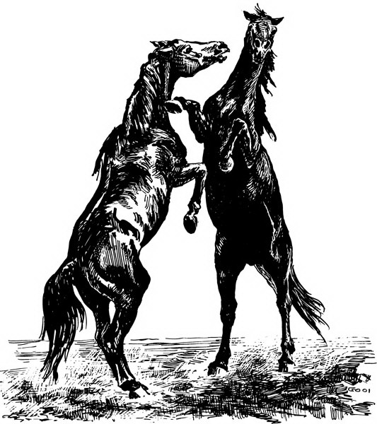 И как же объяснить такое противоречивое поведение? Ученые долго изучали поведение лошадей, живущих на воле, прежде чем смогли дать квалифицированный ответ. Дикие лошади крайне редко обитают поодиночке или же, наоборот, образуют огромные стада. Скакуны на свободе живут семьями или группами (как и другие непарнокопытные животные, кроме ослов). В семье, как всегда, есть глава, отважный жеребец, и одна-две кобылы с подрастающим молодняком. Юные жеребцы (где-то в возрасте от одного до трех лет) обычно отделяются от родителей и до поры до времени, пока не станут достаточно опытными и сильными, чтобы создать собственную семью, живут мужскими компаниями. Отдельные группы часто встречаются у водопоя, иногда даже пасутся вместе несколько дней на богатом пастбище, но потом всегда расходятся, каждая своей дорогой.
