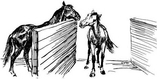 В современных конюшнях, где почти все контакты между животными пресекаются, часто можно наблюдать следующую трогательную сцену. Две лошади стоят неподвижно в своих денниках, высоко задрав головы и прислонившись мордочками к холодной железной решетке, разделяющей их «комнаты». Внимательно присмотревшись, замечаешь, как еле заметно шевелятся их губы: нежно, очень ласково они целуют ноздри, щеки, подбородок друг друга.
