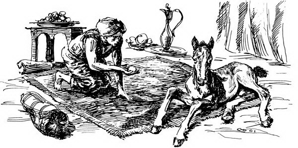 Арабского жеребенка воспитывают со всевозможной заботой, с первого дня его появления он растет как член семейства. Арабские лошади беспрепятственно впускаются в шатер хозяина и свободно играют с детьми, как большие собаки. Хозяин следит за каждым движением животного, обращаясь с ним нежно и любовно и с крайней осторожностью приручает к седлу. Только через семь лет у арабов лошадь считается взрослой, зато из нее вырастает превосходный скакун.