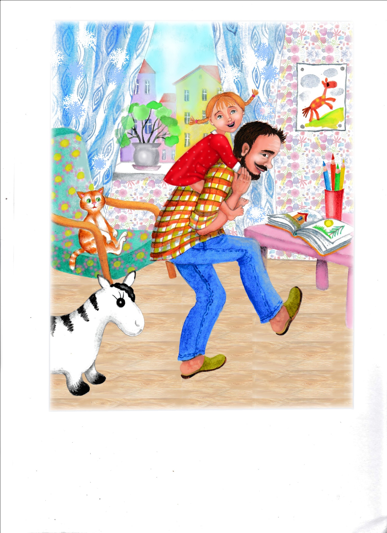 Маришка обожала играть с папой. С ним было очень весело. Папа умел рычать, как настоящий медведь и скакать не хуже самой быстрой лошадки! Маришка вскарабкивалась к нему на спину и крепко обнимала за шею. Ударяя пяткой в бок, размахивала воображаемым хлыстом, кричала: