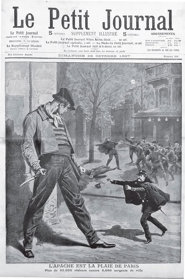 чего недоставало на родине: секс, алкоголь и искусство.Туристы из стран с более строгими порядками, скажем, из Германии и России, где вне закона была порнография, здесь получали ее в избытке. В особенности их восхищали уличные разбойники, известные как apaches (апаши). Откуда взялось это прозвище – история темная. Может, они преклонялись перед каменнолицыми храбрецами, о которых Париж узнал из привозных шоу наподобие “Дикого Запада” Буффало Билла Коди. Согласно другой гипотезе все пошло с заметки об уличной драке на Монмартре, о которой журналист написал: “Яростная стычка между двумя мужчинами и женщиной обратилась дикой жестокостью индейцев апачи”.