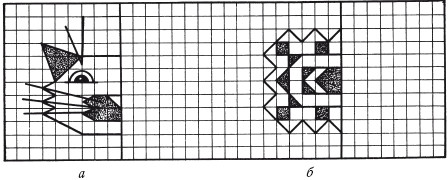 Рис. 16. Игра «Дорисуй картинку»: а – кот; б – коврик
