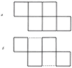 Сначала нужно сложить фигуру в виде квадратов из палочек или спичек, как показано на рисунке 21 а.