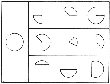 Ребенку нужно на каждой полоске рисунка 23 отметить галочкой две части, из которых можно составить круг.