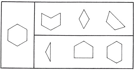 Ребенку нужно на каждой полоске рисунка 24 отметить галочкой две части, из которых можно составить шестигранник.