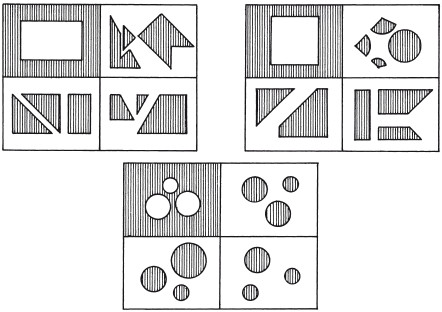 Инструкция ребенку: внимательно посмотри на картинки (рис. 26) и найди, где расположены детали, из которых можно составить фигуры, изображенные на черных прямоугольниках.