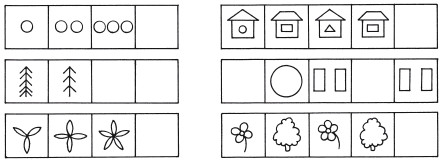 В этой игре ребенку нужно внимательно посмотреть на картинки (рис. 39) и заполнить пустые клетки, не нарушая при этом закономерности.