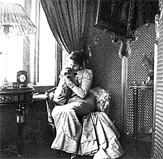 Императрица Александра Федоровна в Угловом кабинете с собачкой. 1900 г.