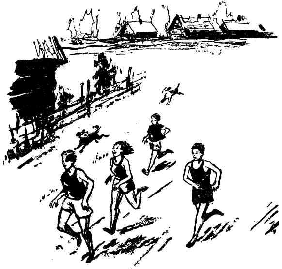 Тропинка, по которой шли девочки, вдруг убежала в молодой сосновый лес, потом вырвалась на полянку и стала спускаться к реке. На берегу ее и находился спортивный лагерь.