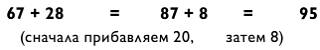 Вам следовало сложить 68 + 40 = 108 и 108 + 5 = 113 (итоговый ответ). Было ли вам проще? Если хотите проверить свои силы на большем количестве задач на сложение двузначных чисел, обратитесь к примерам, представленным ниже. (Ответы и ход вычислений приведены в конце книги.)