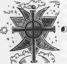 оперся на них и взял у Габара кусок мягкой бледно-желтой ткани. Там было изображение, четкие темно-синие линии: треугольник с равными сторонами, поверх него — два перекрещенных полумесяца, в середине их маленький круг, и все это перечеркнуто крестом. Сол пощупал материю, но не смог понять, что это.— Рисунок?.. — вопросительно сказал следопыт.