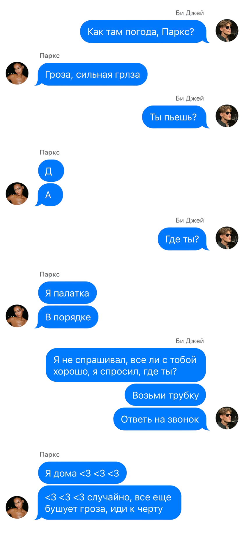 А впрочем, все отражено на моем лице, и люди все понимают. Перри морщится, у Пэйли грустные глаза каждый раз, когда она смотрит на нас с Би Джеем.