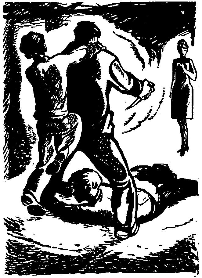 Представьте себе здоровенного дядю, пьяный, ругается. Пристал к девушке. В аллее темно. Никого поблизости нет. Было там несколько пижонов, но они тут же убежали. А Костька и Толик не испугались. Костька палкой выбил нож у хулигана. Толик к нему под ноги бросился. А тут и та девушка в себя пришла. На помощь стала звать. Ух, и драка у них была! Костьке тот гад голову пробил. Его потом в больницу отправили. Но все-таки уйти гаду не удалось.
