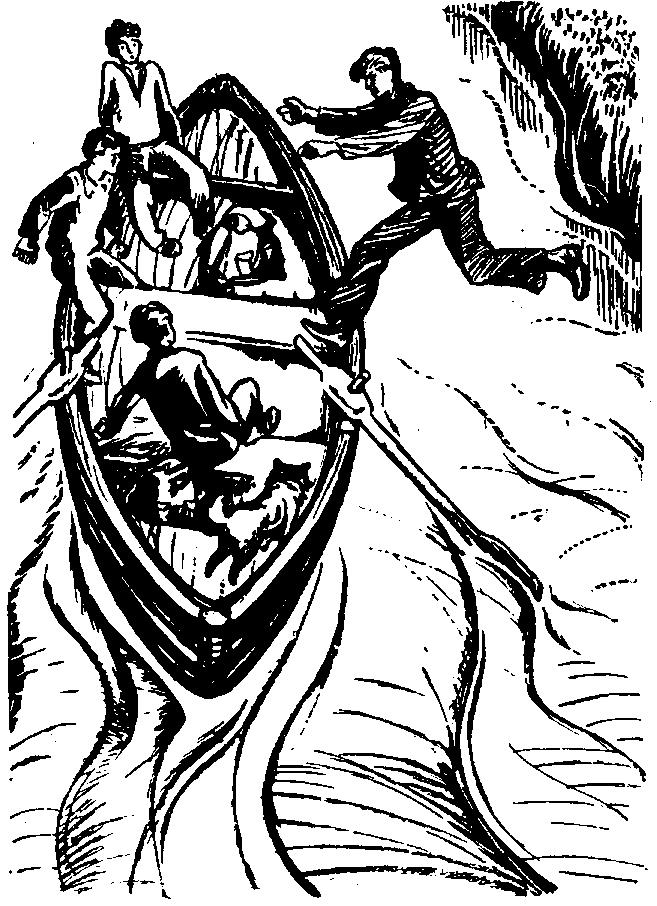 Не дожидаясь дальнейшей команды, мы с Паганелем судорожно схватились за весла. Валька отпихнул Шаврика и занял место на корме. Тип сел на переднюю банку, широко расставил ноги, достал трубку, набил ее табаком и закурил.